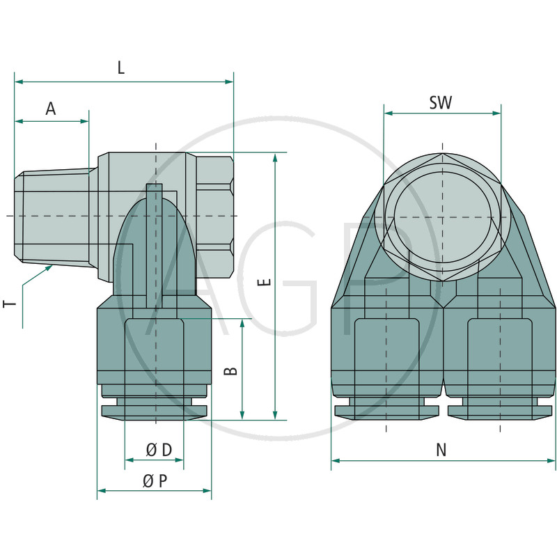 Hydraulika / Vzduchotlaká technika / Zásuvné šroubení / Zástrčná šroubení z umělé hmoty / Y-spojka se zástrčným šroubením z umělé hmoty