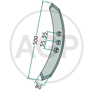 Hrot, radlička kultivátoru, kombinátoru 280 x 80 x 12 mm vhodný pro Kuhn, Huard