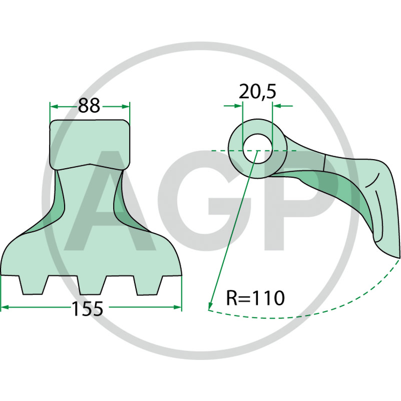 Mulčovací kladivo pro mulčovače Willibald, Nobili, Kuhn o šířce kladiva 155 mm