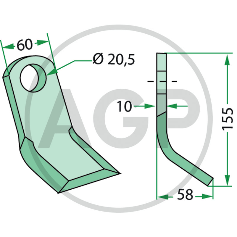 Nůž mulčovače pro Maschio o tloušťce 10 mm a průměru díry 20,5 mm