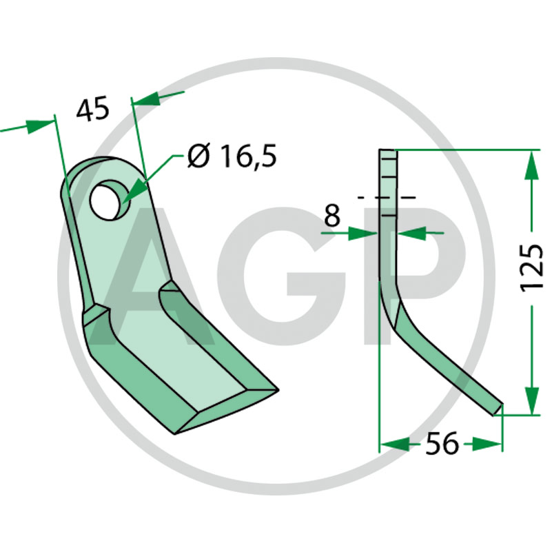 Mulčovací nůž, pracovní šířka 56 mm, Ø otvoru 16,5 mm, šířka upevnění 45 mm