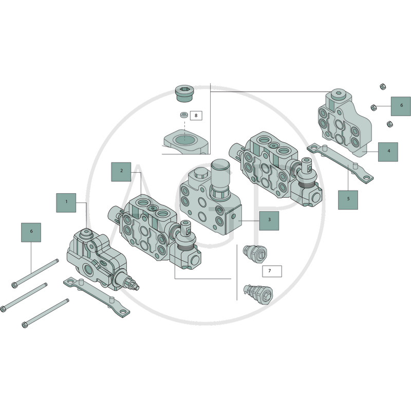 Hydraulika / Hydraulické rozvaděče / Hydraulické rozvaděče ovládané ručně, přes lanovody / WALVOIL - Ventily ruční páky / Řídící ventil, montáž do sekcí