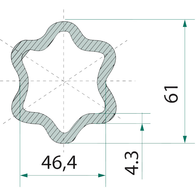 Trubka ke kardanu profilu hvězda o rozměru 61 x 46,4 mm o délce 1 m