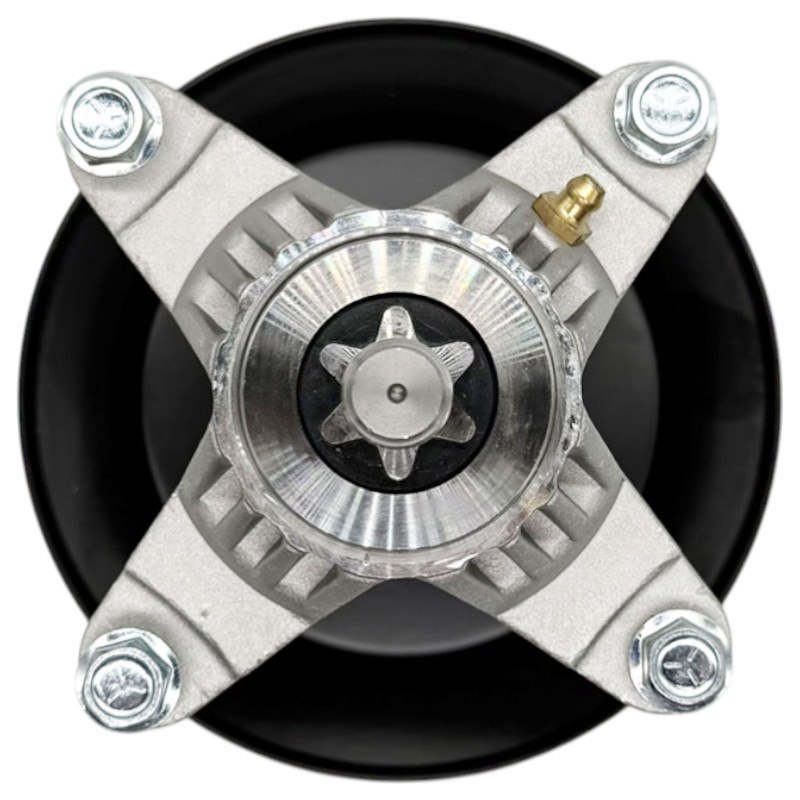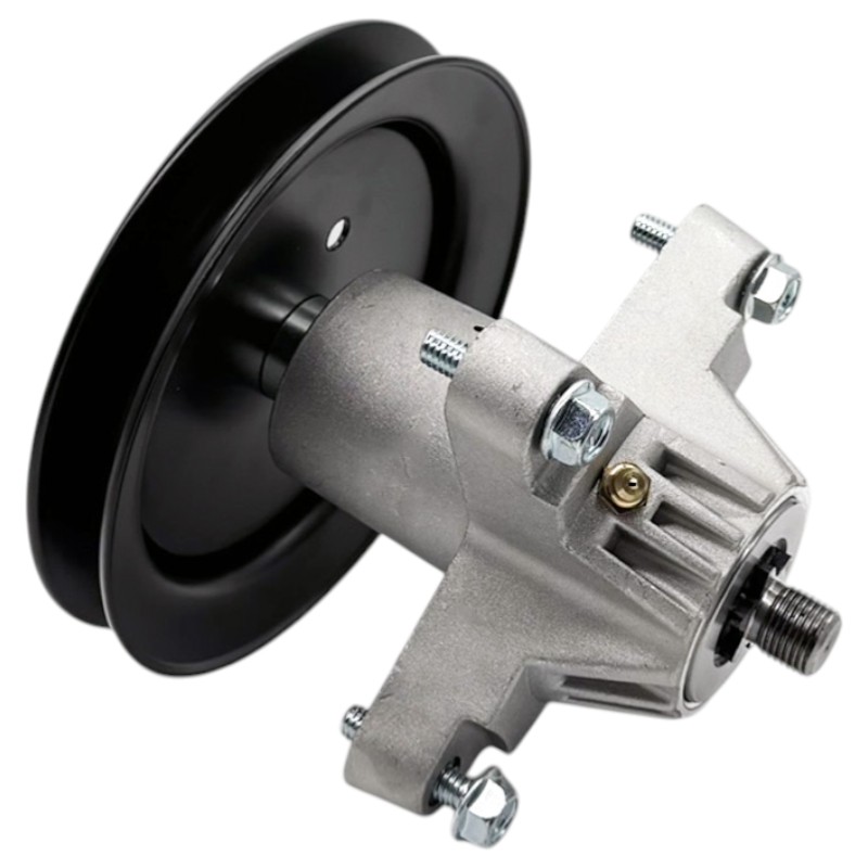 Kompletní vřeteno (mandrela) žacího ústrojí určené pro zahradní traktory MTD, Cub Cadet a Toro. Jedná se o klíčový prvek sečení, který přenáší výkon z řemenového pohonu na žací nůž a zajišťuje jeho plynulý a stabilní chod. Toto provedení je určeno pro boční výhoz a žací ústrojí se záběrem 107 cm, kde je kladen důraz na přesnost, vyvážení a dlouhou životnost.