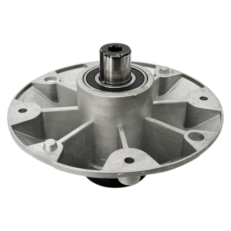 Vřeteno nože / náboj nože s ložisky a krátkou hřídelí pro zahradní traktory a ridery Castel Garden a Stiga je kompletní náhradní díl určený pro žací ústrojí Stiga Combi 100, Combi Pro 110 a Combi Pro 125. Slouží jako unašeč a držák žacího nože, který zajišťuje přesný přenos výkonu z řemene na nůž a plynulý chod celého sečení.