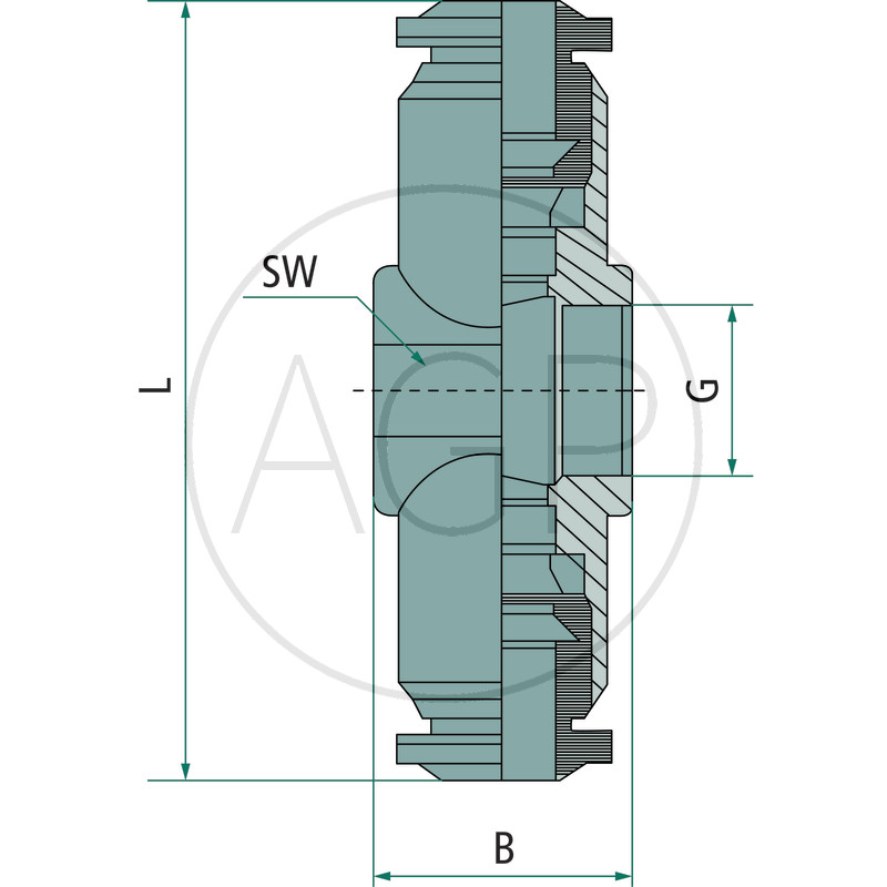 Hydraulika / Vzduchotlaká technika / Zásuvné šroubení / Zástrčné šroubení z mosazi, niklováno / Zástrčné šroubení s T- spojením z mosazi, niklováno