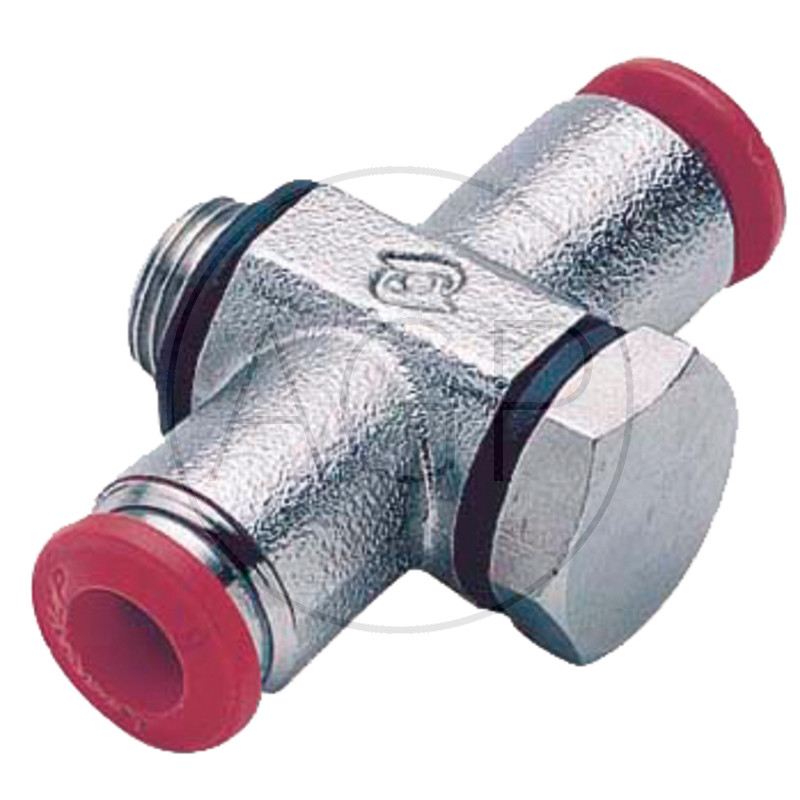 Hydraulika / Vzduchotlaká technika / Zásuvné šroubení / Zástrčné šroubení z mosazi, niklováno / Zástrčné šroubení s T- spojením z mosazi, niklováno