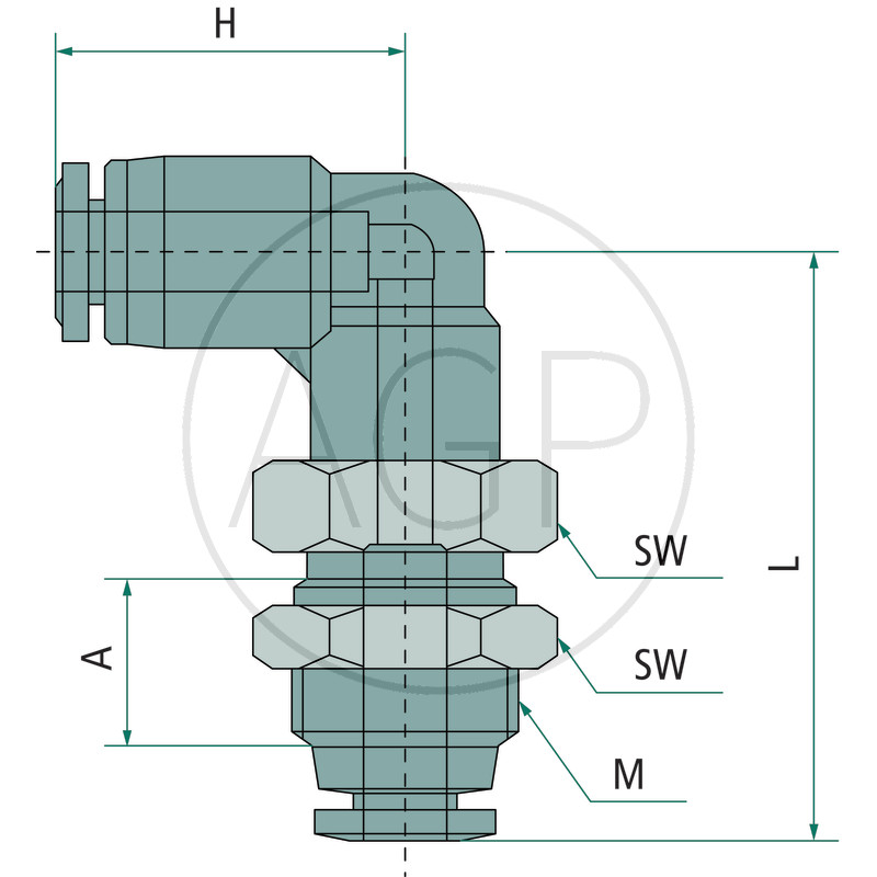 Hydraulika / Vzduchotlaká technika / Zásuvné šroubení / Zástrčná šroubení z umělé hmoty / Úhlová spojka se zástrčným šroubením z umělé hmoty