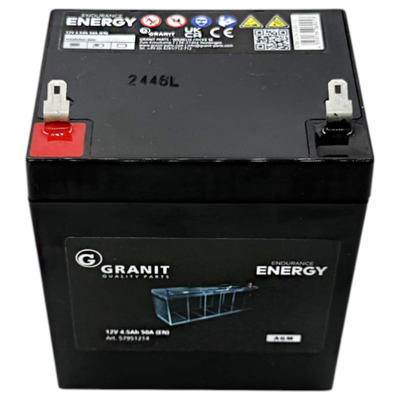 AGM baterie 12V o kapacitě 4,5 Ah od německé značky ENDURANCE ENERGY je kompaktní, bezúdržbový akumulátor určený pro široké spektrum použití – od zahradní techniky až po záložní napájecí systémy. Díky moderní AGM technologii nabízí stabilní výkon, dlouhou životnost a vysokou spolehlivost i při dlouhodobém odstavení. Tato baterie je ideální všude tam, kde je potřeba malý, ale výkonný zdroj energie s okamžitou připraveností k provozu.