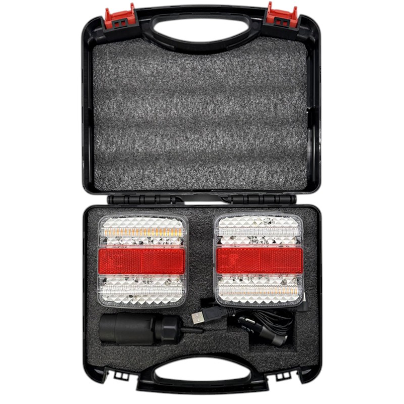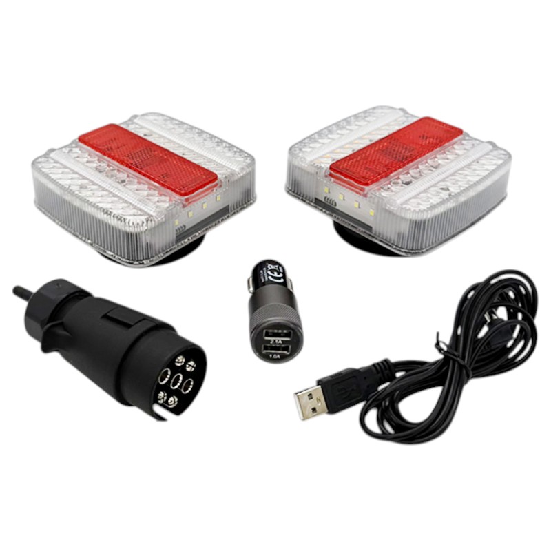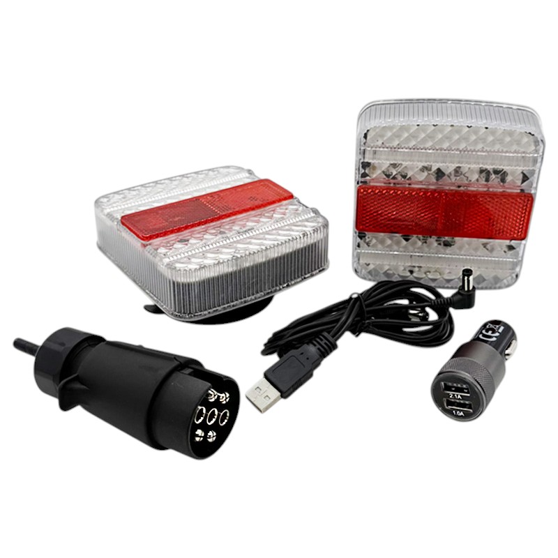 Bezdrátová sada LED světel s magnetem pro přívěsy a vleky je praktické řešení pro rychlé a spolehlivé zadní osvětlení bez nutnosti tahat kabeláž po vleku. Stačí zapojit 7pólový vysílač do zásuvky vozidla, který okamžitě přenáší signál do obou světel pomocí 2,4 GHz komunikace bez prodlevy. Díky silným magnetům, integrovaným bateriím a dynamickému blinkru je sada ideální pro přívěsy za auto, vleky za traktor, plaťáky, vyvážečky do lesa i převoz nákladu, kde potřebujete rychlé přenosné řešení.