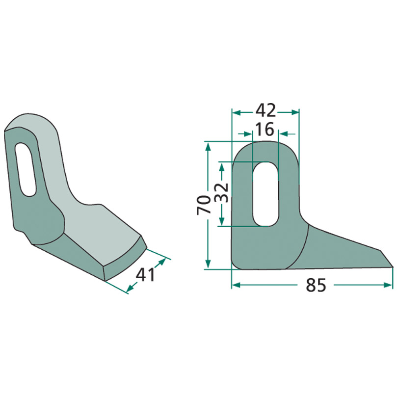 Kladivo mulčovače o šířce 41 mm s oválnou dírou 16x32 mm pro mulčovače Bomford, Epoke, Hymach, Mc Connel, Noremat, Turner