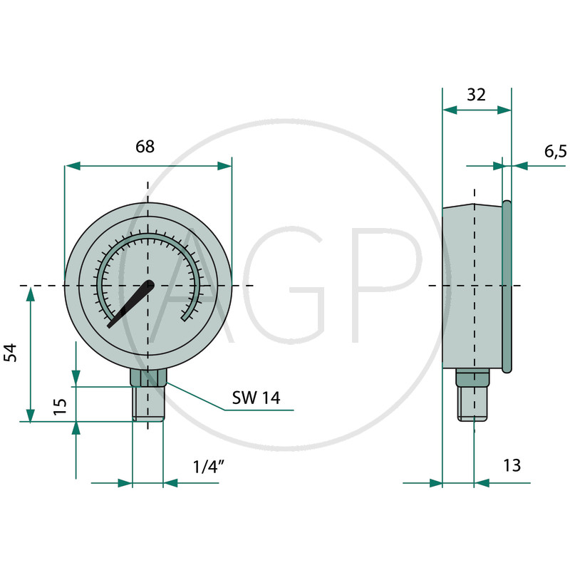 - Připojovací závit manometru: G 1/4" BSP