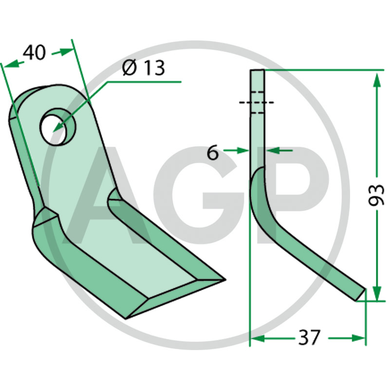 Mulčovací nůž, pracovní šířka 37 mm, Ø otvoru 13 mm, šířka upevnění 40 mm