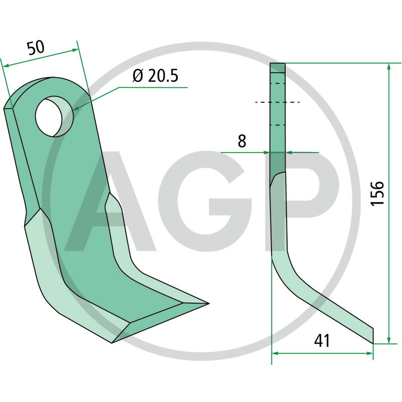 Mulčovací nůž, pracovní šířka 41 mm, Ø otvoru 20,5 mm, šířka upevnění 50 mm