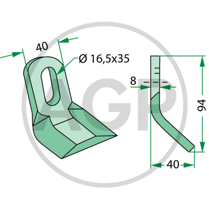 Mulčovací nůž, pracovní šířka 40 mm, Ø otvoru 16,5 x 35 mm, šířka upevnění 40 mm
