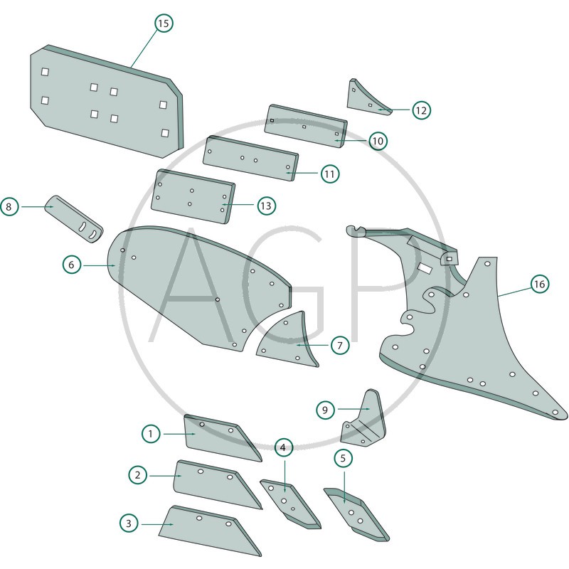 Připomínka k montáži: Při výměně utahujte šrouby střídavě aby nedošlo k prasknutí. Použijte podložky k vyrovnání rozměrových tolerancí na odhrnovacích listech a čelních dílech odlitku, aby nevznikalo k napětí a prasklinám v součástech. Neotáčejte šrouby a matici pneumatickým nástrojem, protože by mohlo dojít k poškození opotřebení (prasklin).