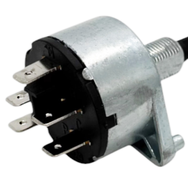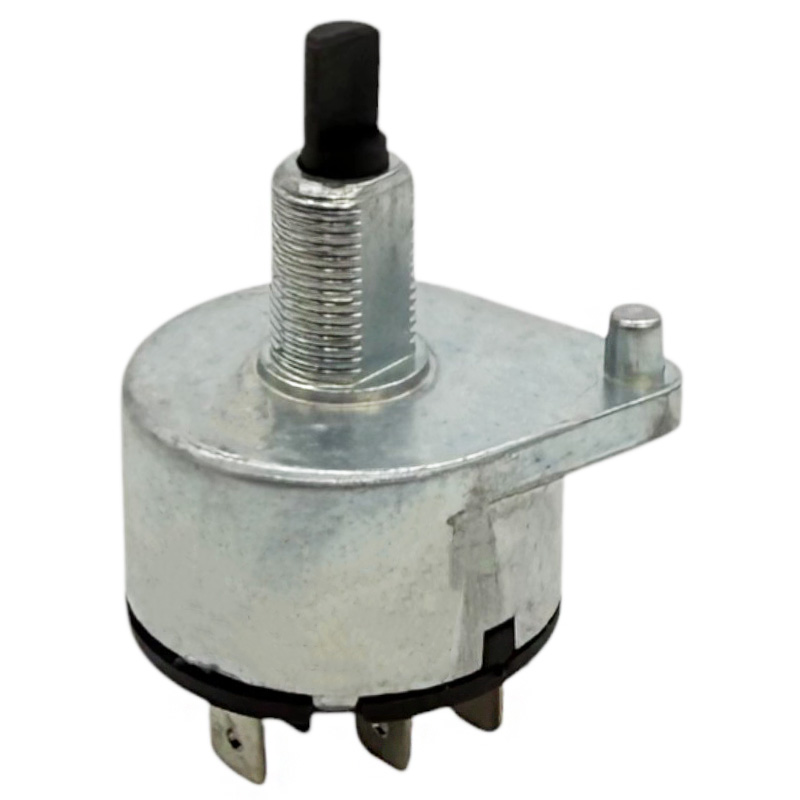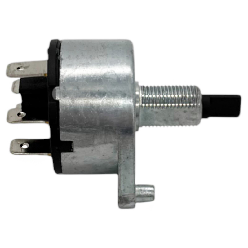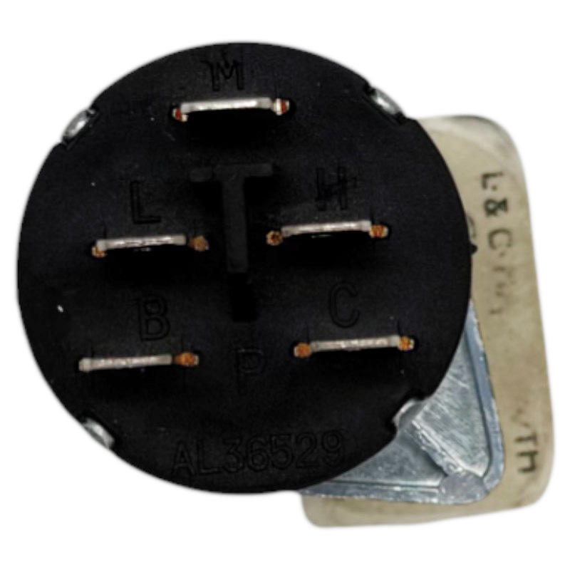 Kvalitní otočný spínač světel určený pro traktory John Deere, který slouží k zapínání a přepínání různých režimů osvětlení – například parkovacích, tlumených a dálkových světel. Tento spínač je vybaven 5 plochými konektory pro zapojení elektroinstalace (označení svorek: M, L, H, B, C, mezi B a C je označení P). Dodává se bez otočného ovládacího knoflíku, který lze dokoupit samostatně podle typu kabiny.