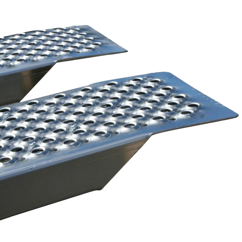 Prohnuté hliníkové nájezdy o délce 2000 mm a nosnosti až 1000 kg na pár jsou určeny pro bezpečné a komfortní najíždění střední mechanizace na přívěsy, dodávky či nákladní automobily. Díky prohnutému tvaru zajišťují plynulý nájezd a zabraňují kontaktu spodní části stroje s hranou ložné plochy. Jsou vyrobeny z kvalitního hliníku, který poskytuje vysokou pevnost při zachování relativně nízké hmotnosti. Protiskluzový perforovaný povrch zvyšuje bezpečnost i v náročných podmínkách (mokro, bláto, hladké pneumatiky).