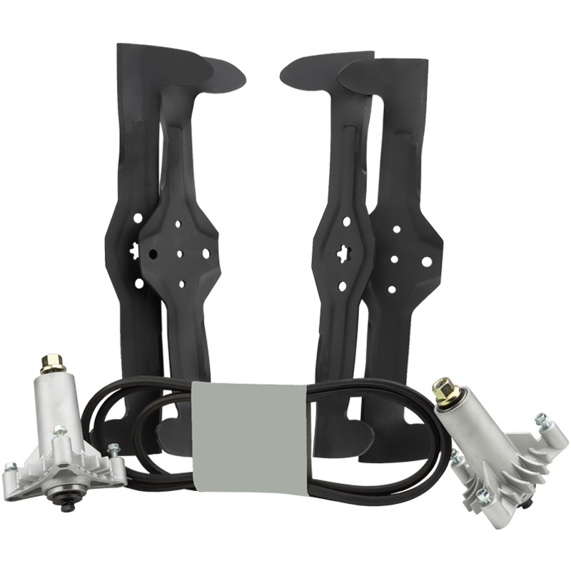 - Kompletní sada: Balení obsahuje 2x levé a 2x pravé žací nože, obě nožové vřetena a dvojitý klínový řemen, což zajišťuje úplnou údržbu žacího ústrojí.